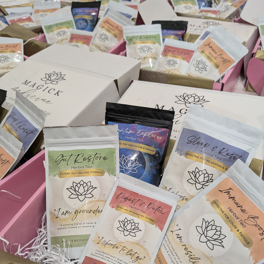 Herbal apothecary, gut healing, ritual teas, physical support. ↓