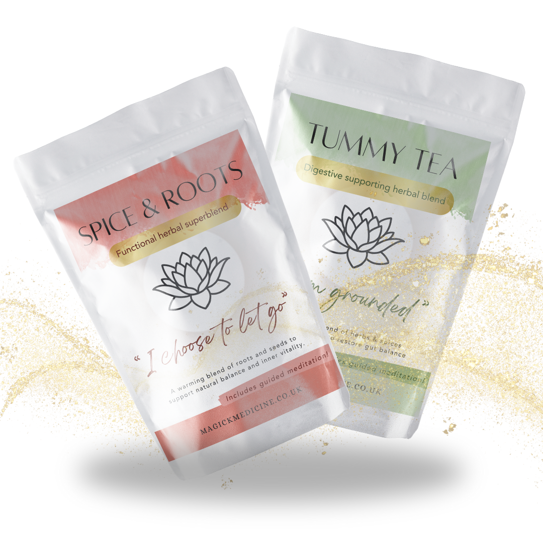 • Two complementary blends — Tummy Tea and Spice & Roots — for balance, grounding, and mindful renewal.